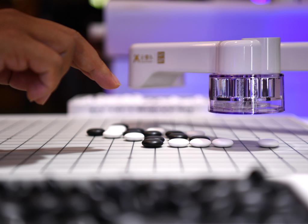 圖為2024年5月30日,在瑞士日內瓦舉行的2024年“人工智能造福人類全球峰會” 上,參會者和中國移動開發的AI機器人下棋。(新華社記者連漪攝)