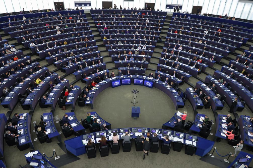 這是2019年11月27日在法國斯特拉斯堡拍攝的歐洲議會全會現場。新華社記者張鋮攝