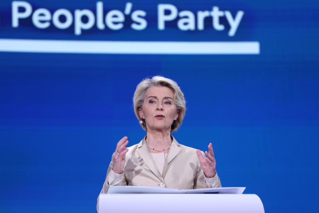6月9日,在比利時布魯塞爾,人民黨黨團“領銜候選人”馮德萊恩在歐洲議會發表演講。新華社記者趙丁喆攝