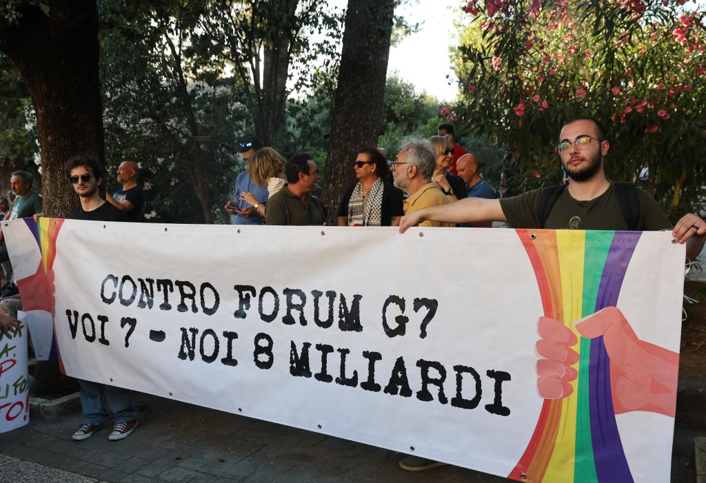 七國集團峰會6月13日至15日在意大利普利亞大區法薩諾舉行。圖為6月14日,在法薩諾鎮,人們在抗議活動中。新華社記者李京攝