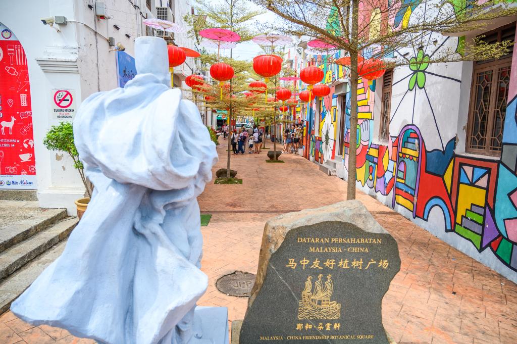 這是2019年12月20日在馬來西亞馬六甲拍攝的鄭和·朵云軒(馬六甲)藝術館外的馬中友好植樹廣場。600多年前,鄭和五次駐節馬六甲,由他帶到這片土地上的中華文化如今已深深融入當地多元文化之中。新華社記者朱煒攝
