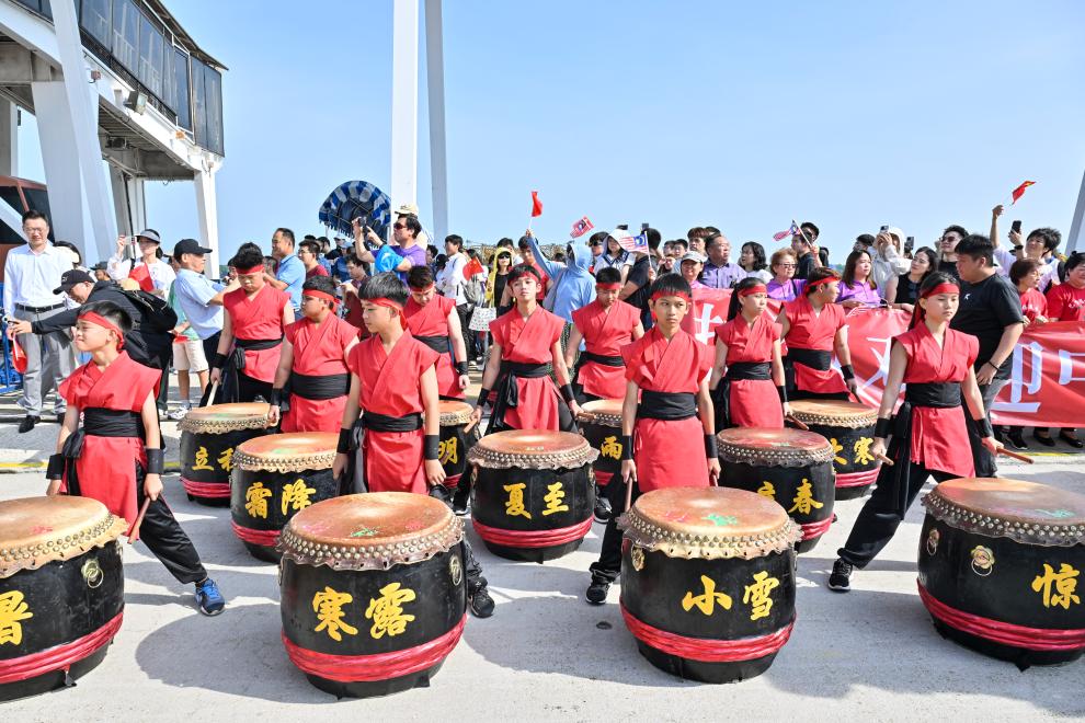 這是5月2日在馬來西亞雪蘭莪州巴生港拍攝的二十四節令鼓表演。新華社記者程一恒攝