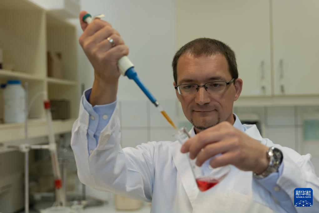 5月27日,在匈牙利布達佩斯,匈牙利農業與生命科學大學研究員佐蘭·若爾特在實驗室工作。 新華社發(弗爾季·奧蒂洛攝)