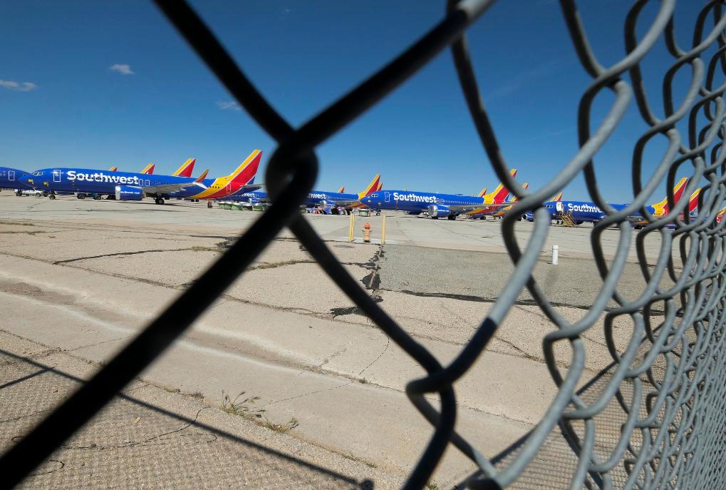 2019年3月27日,在美國加利福尼亞州維克托維爾,美國西南航空公司的波音737 MAX 8型號飛機停泊在南加利福尼亞物流機場。新華社發(趙漢榮攝)