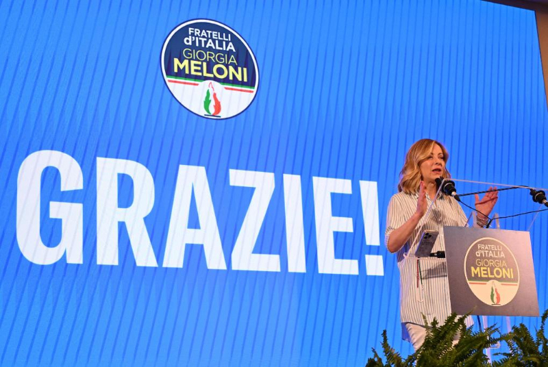 6月10日凌晨,意大利總理梅洛尼在意大利羅馬發表講話。新華社發(艾莉薩·林格利亞攝)