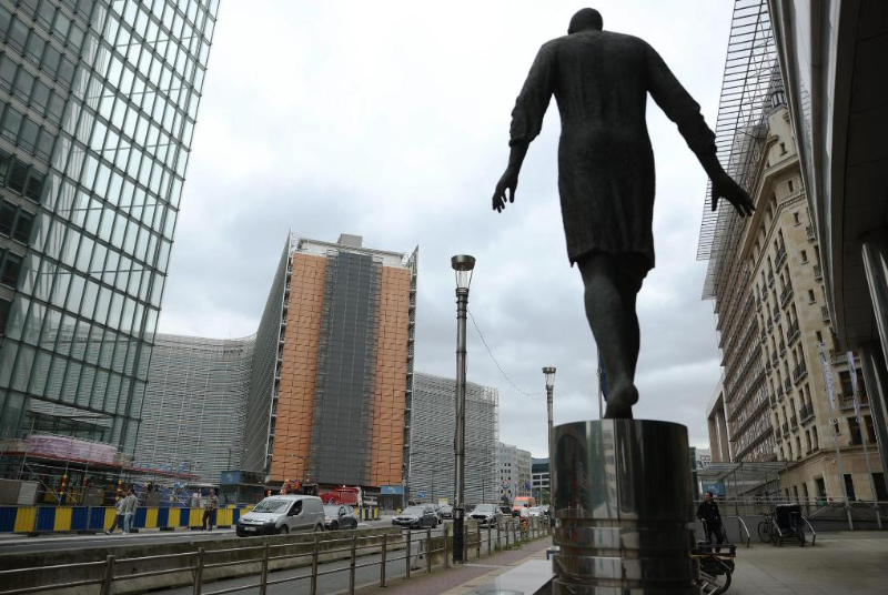 6月3日,在比利時布魯塞爾,車輛駛過歐盟委員會大樓(資料照片)。新華社記者趙丁喆攝