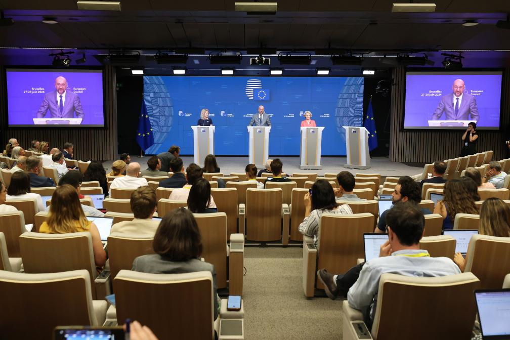 自6月9日歐洲議會選舉投票落下帷幕,歐盟內部已就新領導層人選多次協商,但始終存在分歧。據媒體報道,峰會前夕,代表歐洲人民黨黨團、社民黨黨團和復興歐洲黨團所組成聯盟的6位歐盟國家領導人,就歐盟新領導層人選達成共識。但由于該方案需要在峰會上得到歐盟27國領導人的多數支持才能通過,為了避免影響其他議程,這個極具“敏感性”的議題被放在了27日晚最后討論。