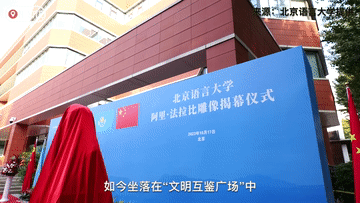 2023年10月17日,北京語言大學舉辦阿里·法拉比雕像揭幕儀式。(視頻截圖)