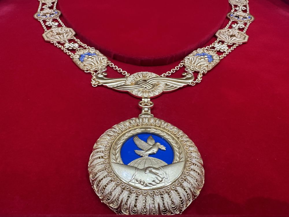 習近平主席在杜尚別總統府舉行隆重授勛儀式,向拉赫蒙總統頒授“友誼勛章”。這是中方首次在境外舉行勛章頒授儀式。