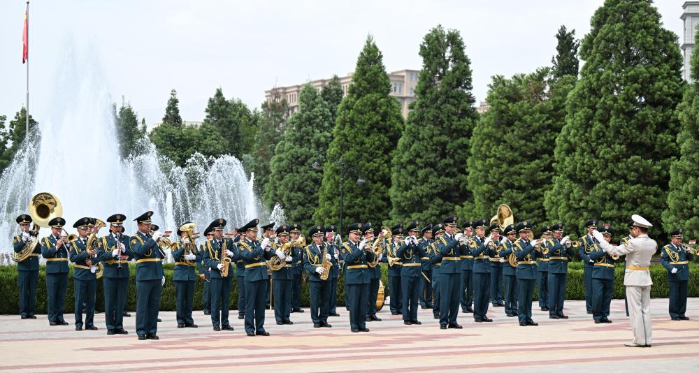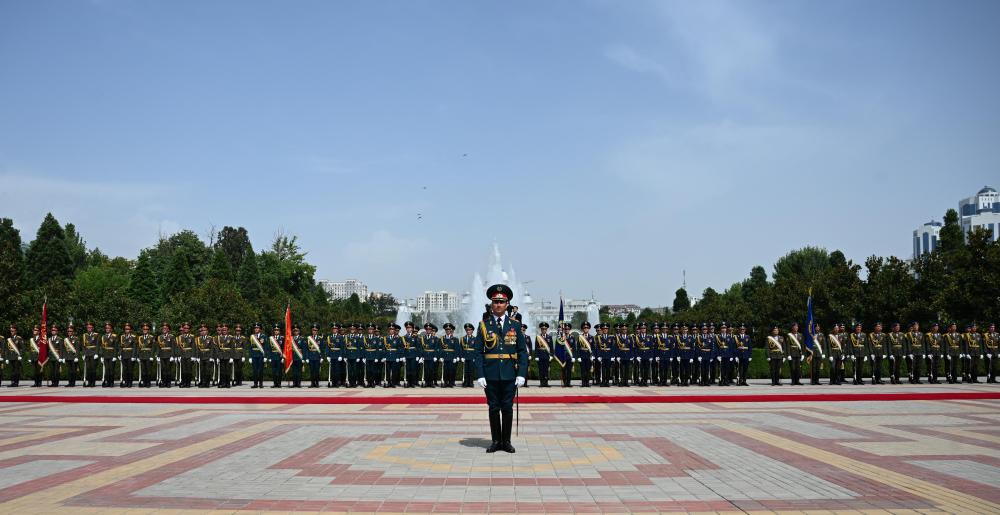 當地時間7月5日,拉赫蒙總統在總統府前廣場為習近平主席舉行盛大隆重的歡迎儀式。