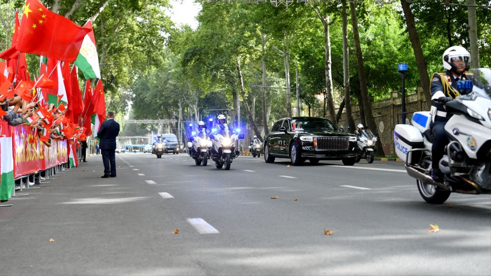 赴機場途中,當地華僑華人和中資機構代表在道路兩旁揮舞中塔兩國國旗,祝賀習近平主席對塔吉克斯坦國事訪問取得圓滿成功。