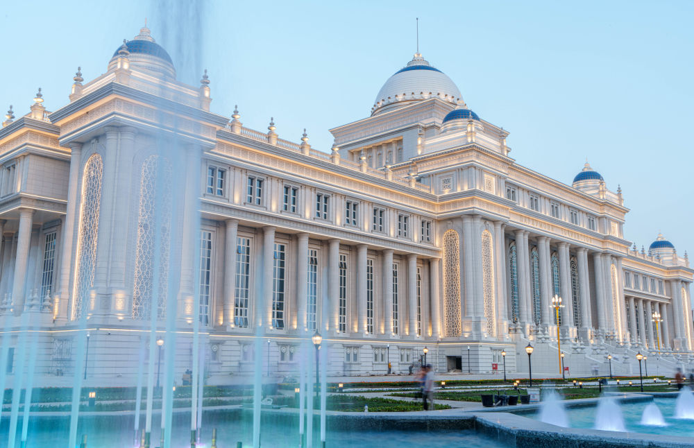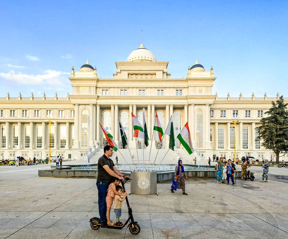 氣勢雄偉的兩座大樓,坐落于杜尚別魯達基大街,融合了塔吉克斯坦建筑風格和中國建筑技術,不僅是塔吉克斯坦首都的新地標,更是中塔深厚友誼的又一見證。