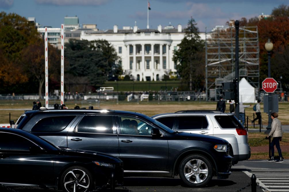 2021年11月23日,在美國首都華盛頓,車輛從白宮附近駛過。新華社發(沈霆攝)