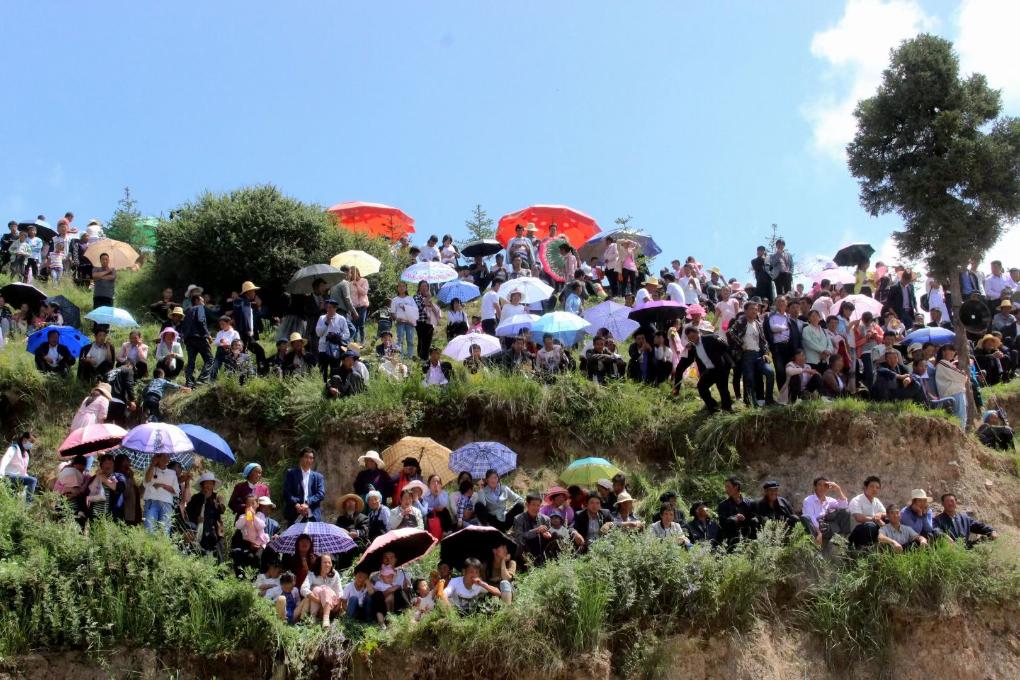 在甘肅省定西市岷縣一處“花兒會”上,群眾聚集在山間欣賞“花兒”。(岷縣融媒體中心供圖)
