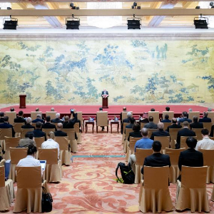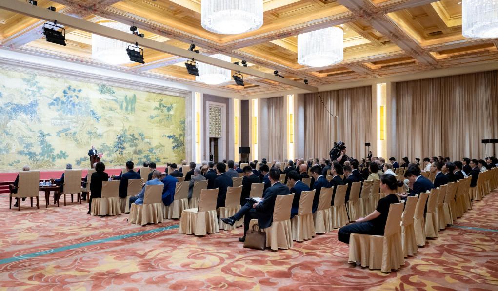 應中方邀請,巴勒斯坦14個派別高級別代表于7月21日至23日在北京舉行和解對話。這是7月23日在北京拍攝的和解對話閉幕式。新華社記者翟健嵐攝