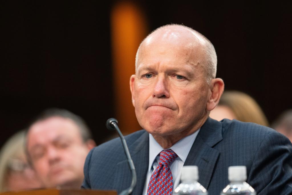 2024年6月18日,在美國華盛頓,時任波音CEO戴夫·卡爾霍恩在國會出席“波音破碎的安全文化”聽證會??柣舳鞒姓J企業的安全文化有瑕疵,但堅稱企業正在改進,致力于提升產品安全性能。新華社記者劉杰攝