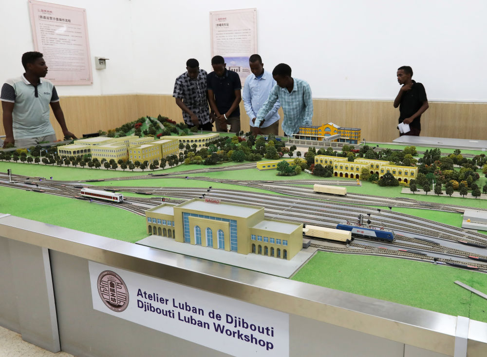 2022年9月19日,在位于吉布提首都吉布提市的吉布提工商學校,學生在魯班工坊鐵道運營沙盤教學區學習。新華社記者 董江輝 攝