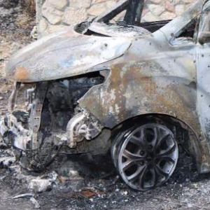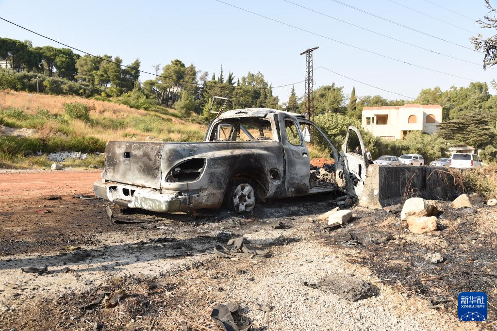 9月9日,在敘利亞中部哈馬省邁斯亞夫地區,一輛汽車在空襲中損毀。新華社發