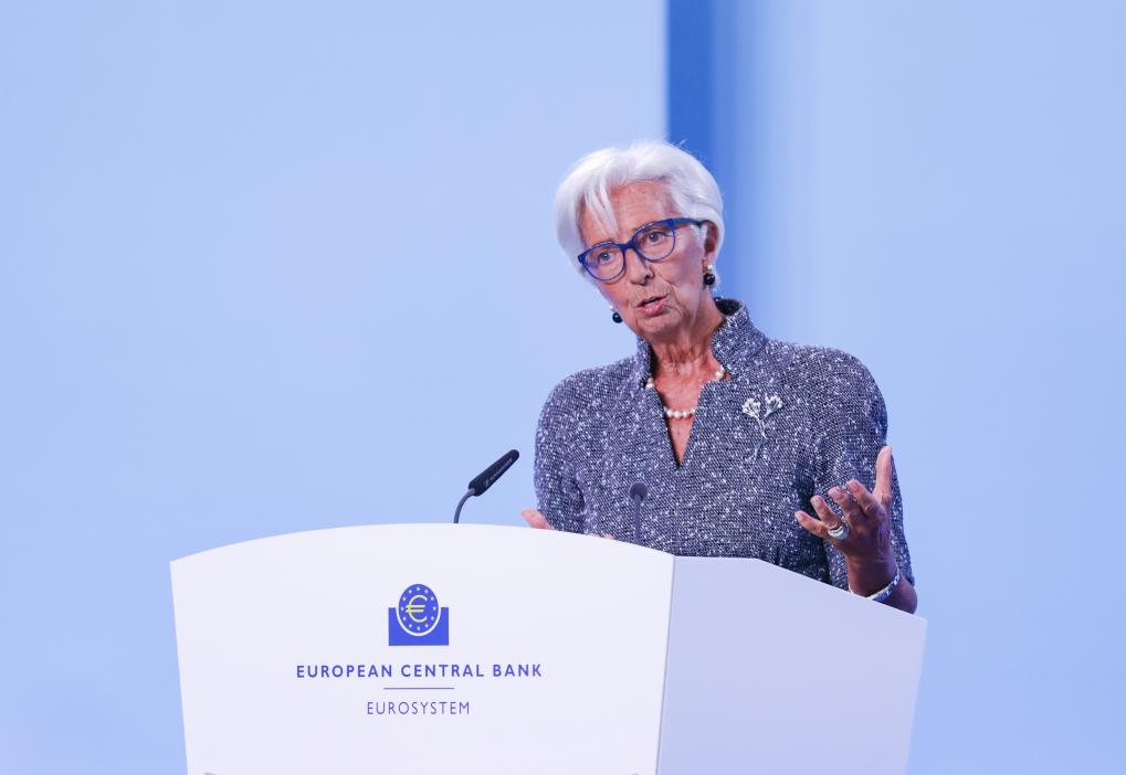 9月12日,歐洲中央銀行行長拉加德在德國法蘭克福歐洲中央銀行總部舉行的新聞發布會上講話。新華社記者張帆攝