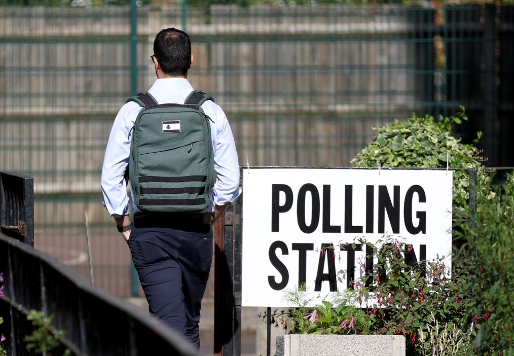 7月4日,在英國倫敦,一名男子在一處投票站投票后離開。新華社記者 李穎 攝