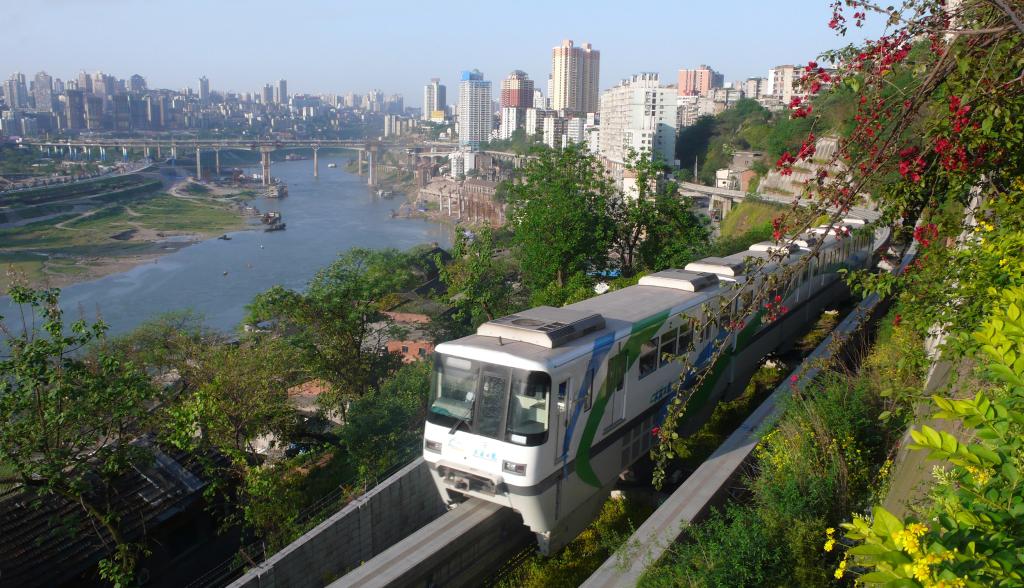 重慶輕軌2號線成為山城重慶流動的風景線(資料照片)。新華社發
