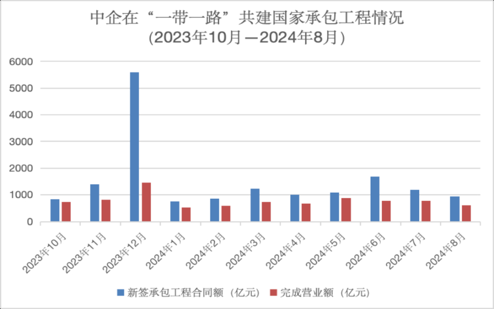 圖3 中國企業在“一帶一路”共建國家承包工程情況(2023年10月—2024年8月)(數據來源:商務部)