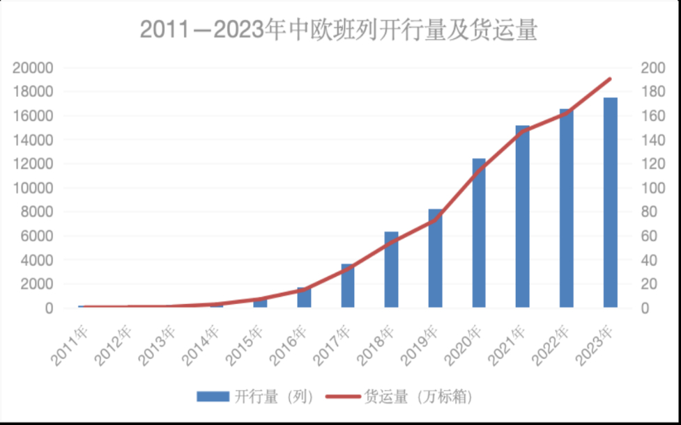 圖1 2011—2023年中歐班列開行量及貨運量(數據來源:中歐班列門戶網站)