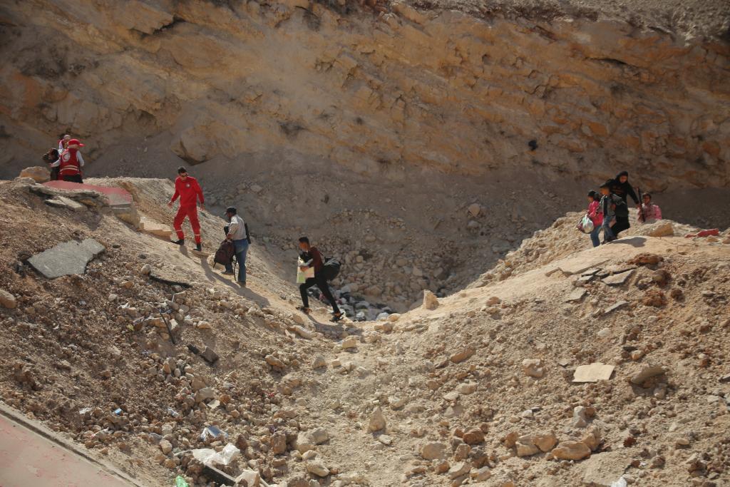 記者在現場看到,從黎巴嫩方向來的逃難者不得不下車,搬起沉重的行囊徒步穿越大坑,然后在大坑另一側乘坐敘利亞紅新月會安排的免費大巴,或提前聯系好的車輛前往敘利亞一側的邊境口岸。