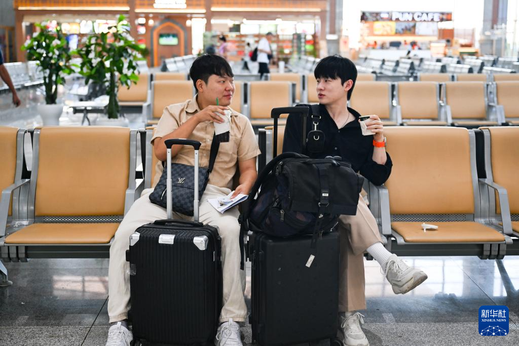 10月12日,在老撾萬象中老鐵路萬象站候車廳,兩名乘客在等候列車。新華社記者 程一恒 攝