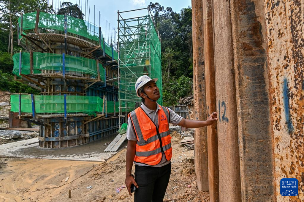 10月11日,在馬來西亞雪蘭莪州,中交馬東鐵項目現場工程師阿茲里爾·哈基姆在施工現場視察工程。新華社發(張紋綜攝)