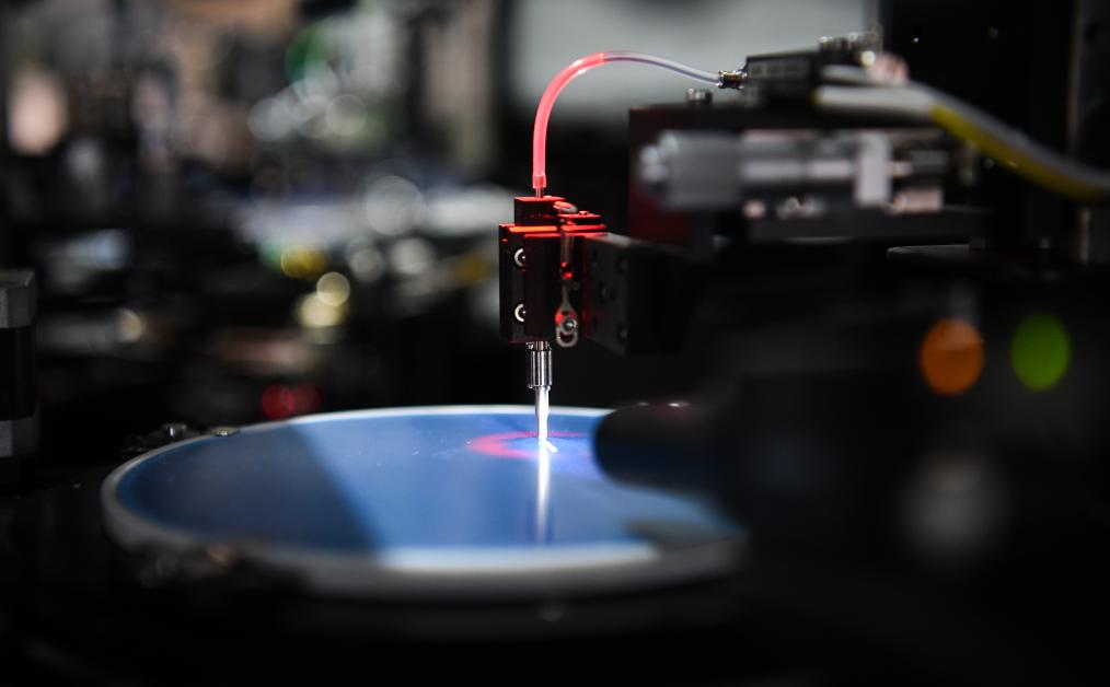 6月3日,武漢普賽斯電子股份有限公司內的芯片測試設備對芯片進行測試。新華社記者杜子璇攝