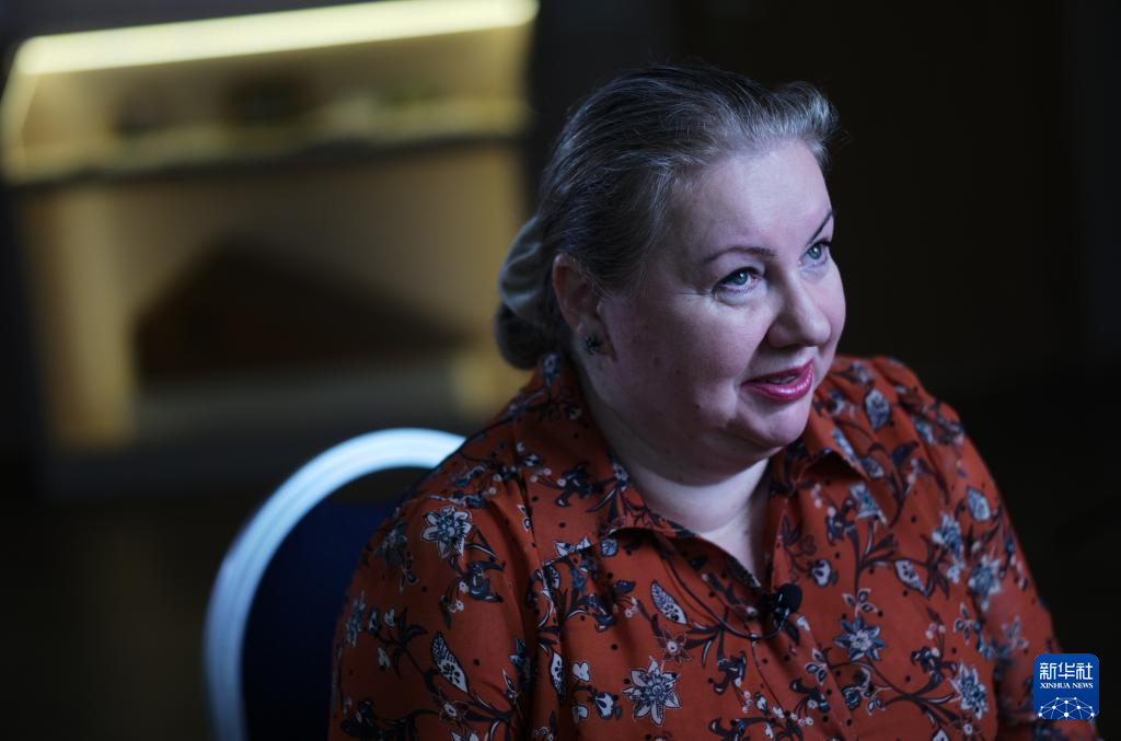 10月14日,在俄羅斯莫斯科州“庫皮納”古斯里琴藝術發展中心,俄羅斯音樂家柳博芙·穆拉維約娃接受新華社記者采訪。