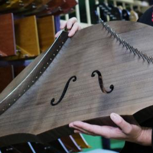 10月14日,在俄羅斯西北部特維爾州普希金諾村,“古斯里琴世界”工坊的創建者謝爾蓋·戈爾恰科夫展示其制作的古斯里琴。