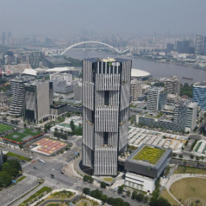 位于上海浦東新區世博園區的金磚國家新開發銀行總部大樓(2022年6月17日攝,無人機照片)。新華社記者方喆攝