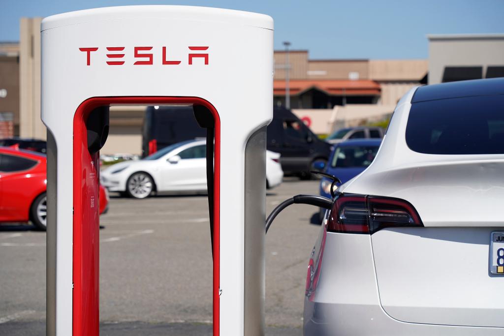 這是4月2日在美國加州圣布魯諾一處停車場拍攝的特斯拉汽車。新華社發(李建國攝)
