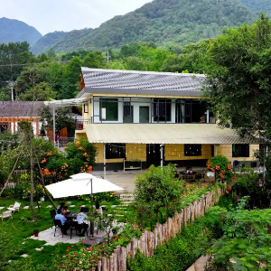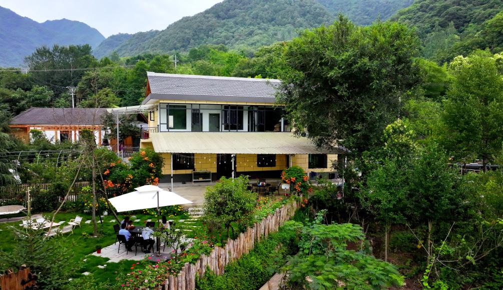 陜西省漢中市留壩縣紫柏街道小留壩村的民宿(2023年7月24日攝,無人機照片)。新華社記者 劉瀟 攝