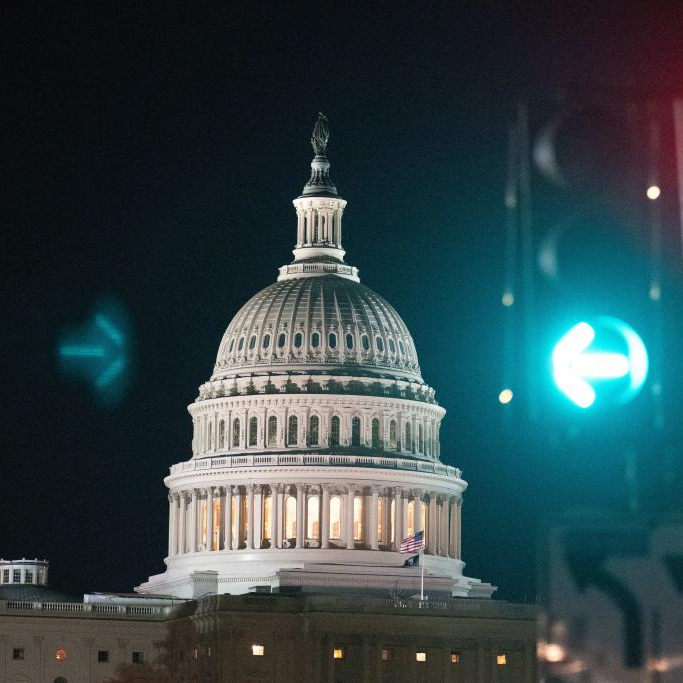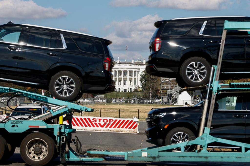 2021年11月23日,在美國首都華盛頓,一輛貨車從白宮附近駛過。新華社發(沈霆攝)