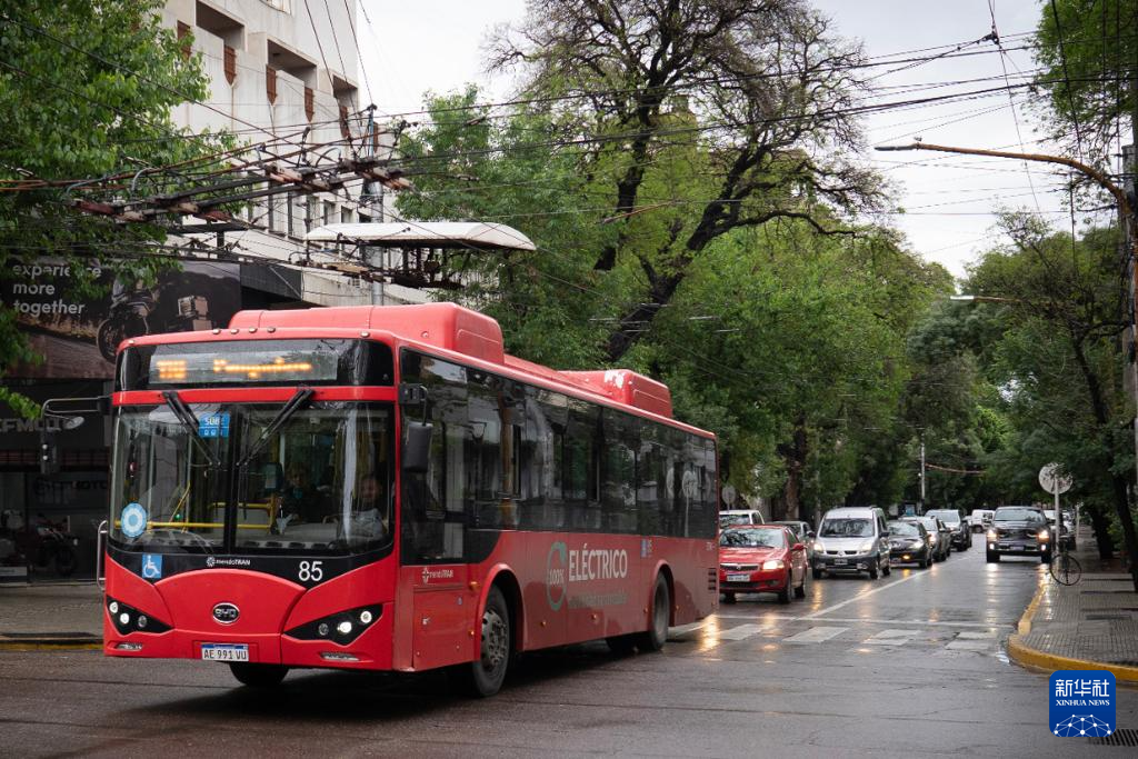 10月8日,來自中國的電動巴士行駛在阿根廷門多薩街頭。新華社發(馬丁·薩巴拉攝)