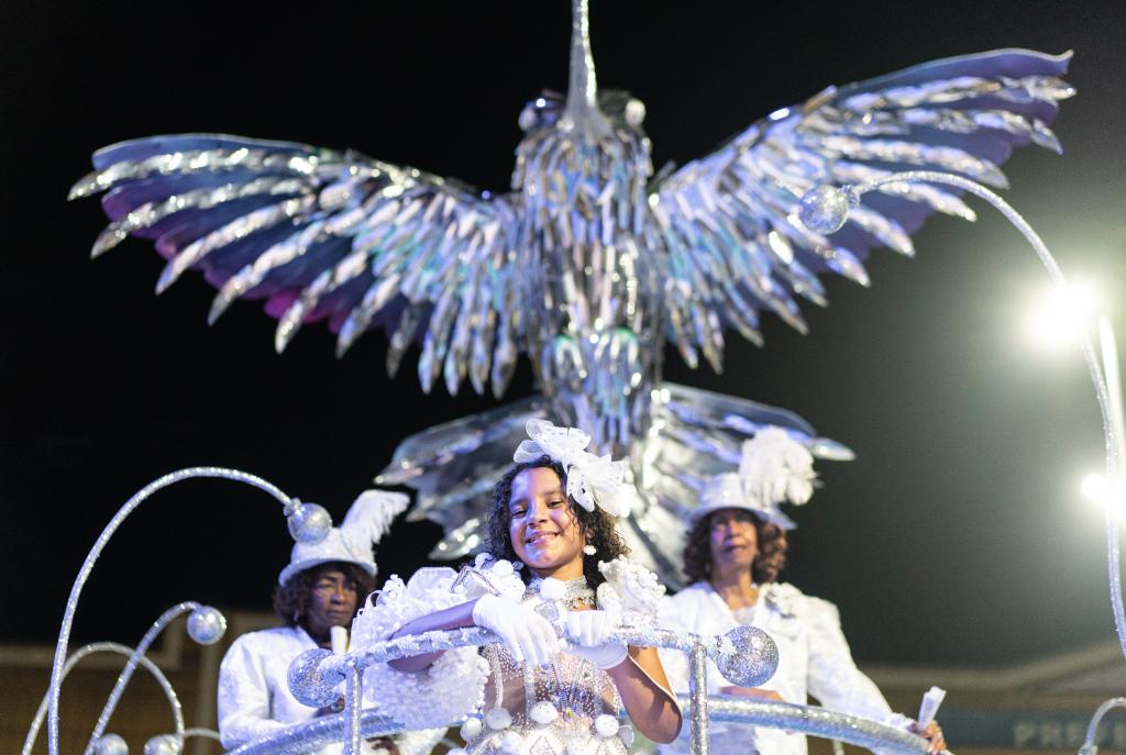 突然,彩色焰火從大道兩側平地而起,與一同亮起的聚光燈奪走全場目光,桑巴鼓點和全場歡呼隨之響起,一輛輛張燈結彩的舞?;ㄜ噺钠瘘c駛出。參加桑巴舞校巡演的舞者有老有少,有男有女。他們并非專業舞蹈演員,日常都有各自的生活,但一旦穿上舞服,來到桑巴大道,都為快樂起舞,祈求快樂之神在新的一年里賜予恩惠。