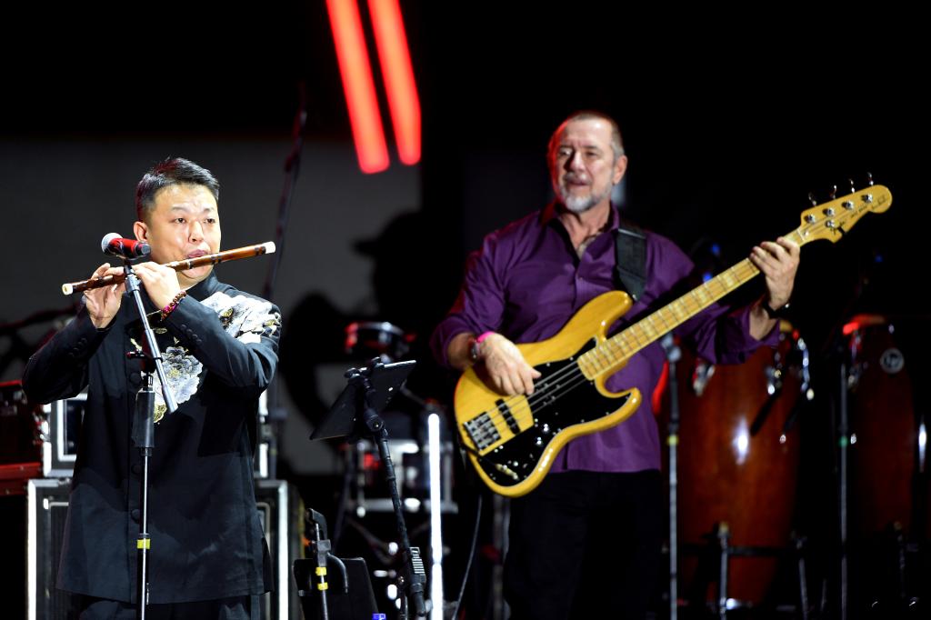 8月17日,在巴西首都巴西利亞,來自中國和巴西的音樂家在沙灘藝術節中國日活動上表演合奏。新華社發(盧西奧·塔沃拉攝)