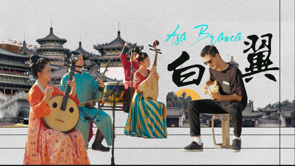 福格特與西安外事鼓樂團合奏歌曲《白翼》。(視頻截圖)