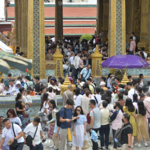 10月3日,中國游客在泰國曼谷大皇宮游覽。新華社發(拉亨攝)