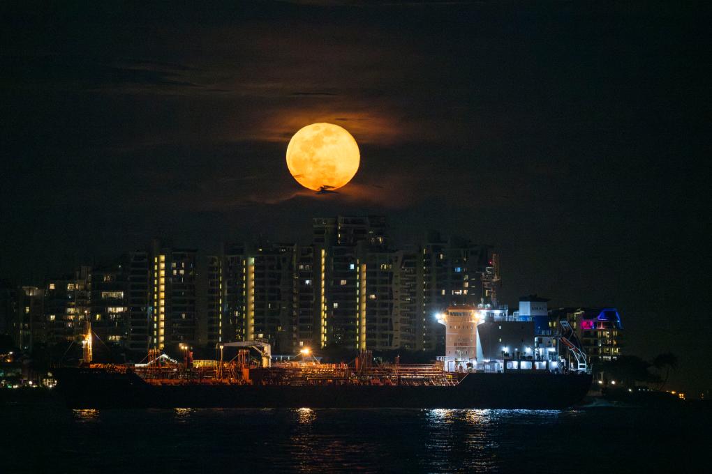 這是11月16日在新加坡拍攝的圓月。新華社發鄧智煒攝