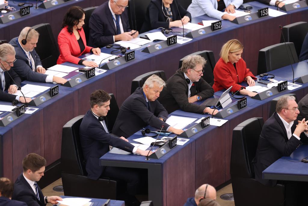 11月27日,在法國斯特拉斯堡歐洲議會會議現場,歐洲議會議員投票表決。新華社記者 趙丁喆 攝