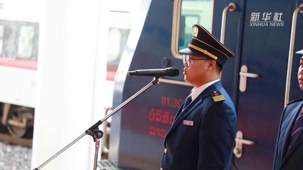 今年24歲的劉銀能是首批獲取獨立值乘資格的老撾年輕人之一。2024年8月5日,中老鐵路機車駕駛證頒發暨獨立乘務首發儀式上,劉銀能莊嚴宣誓,他深刻體會到誓詞背后沉甸甸的責任。