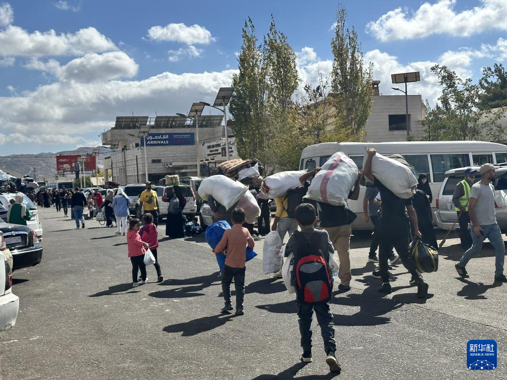 這是2024年10月1日在敘利亞與黎巴嫩邊境的佳迪達·亞布斯口岸拍攝的來自黎巴嫩的流離失所者(手機照片)。新華社記者 冀澤 攝