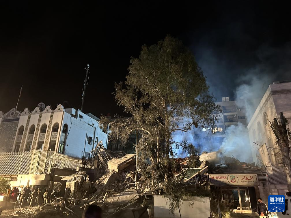 這是2024年4月1日在敘利亞大馬士革拍攝的遭導彈襲擊的伊朗駐敘利亞使館(手機照片)。新華社記者 冀澤 攝