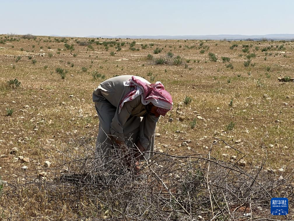 2024年4月17日,在敘利亞東部沙漠,一名“松露獵人”采挖松露(手機照片)。新華社記者 冀澤 攝