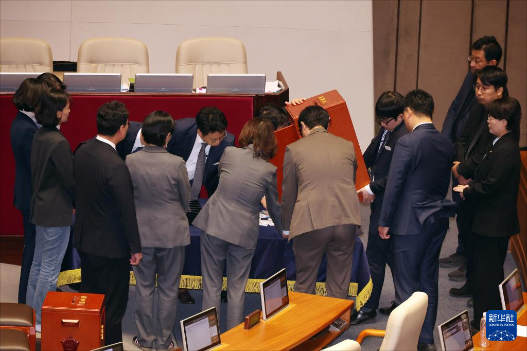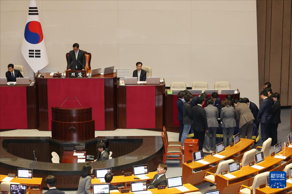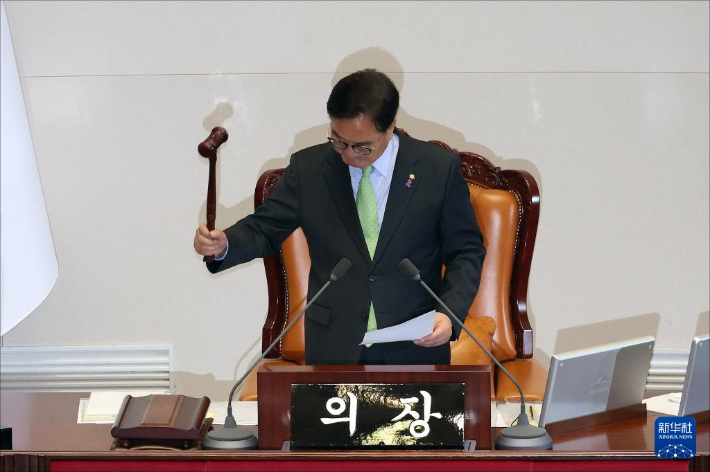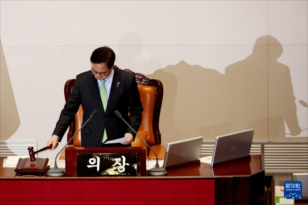 12月7日,在韓國首爾,韓國國會議長禹元植宣布總統尹錫悅彈劾動議案未通過。新華社發