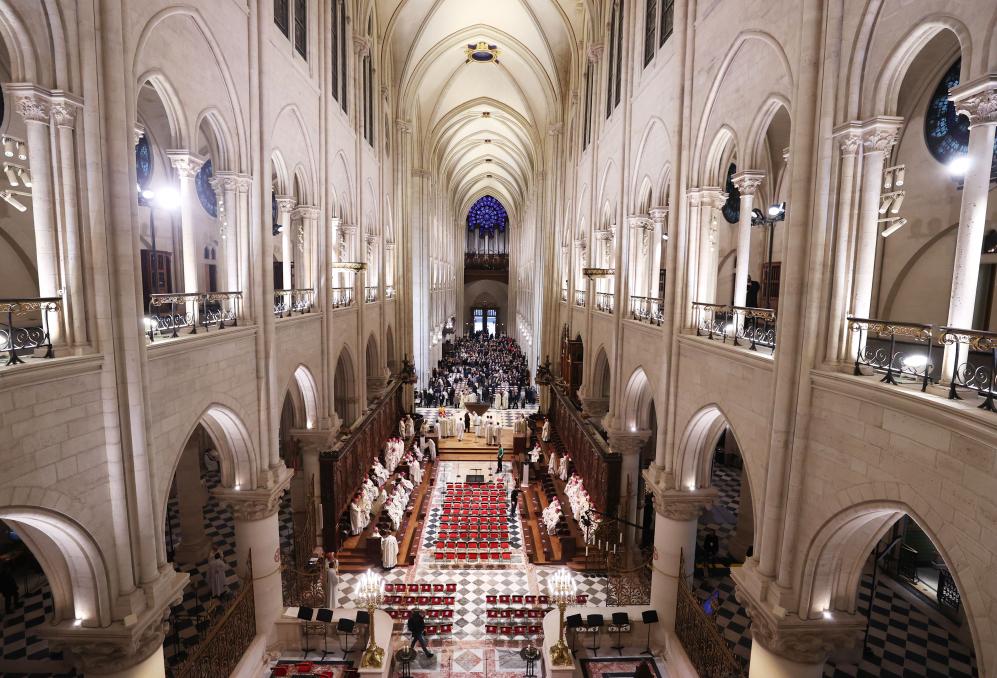 這是12月8日在重新開放儀式上拍攝的巴黎圣母院內景。新華社記者 高靜攝